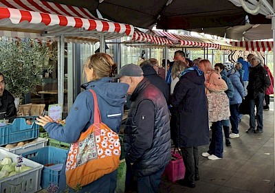 Voor de opening van de landelijke campagne De Week van Ons Eten organiseerden studenten van ROC Da Vinci, samen met restaurant Het Gemaal, de gemeente en onze projectgroep Voedsel van Dichtbij Dordrecht deze markt voor de eerste keer. Vanwege de harde wind moest het event helaas eerder stoppen en moesten we nog tientallen mensen laten weten dat we werken aan een volgende editie, want de reacties waren zo positief dat er zeker een vervolg komt.